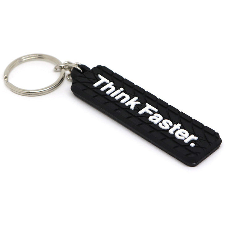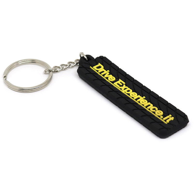 Portachiavi in pvc 2D con incisione pneumatico e logo stampato su due lati.